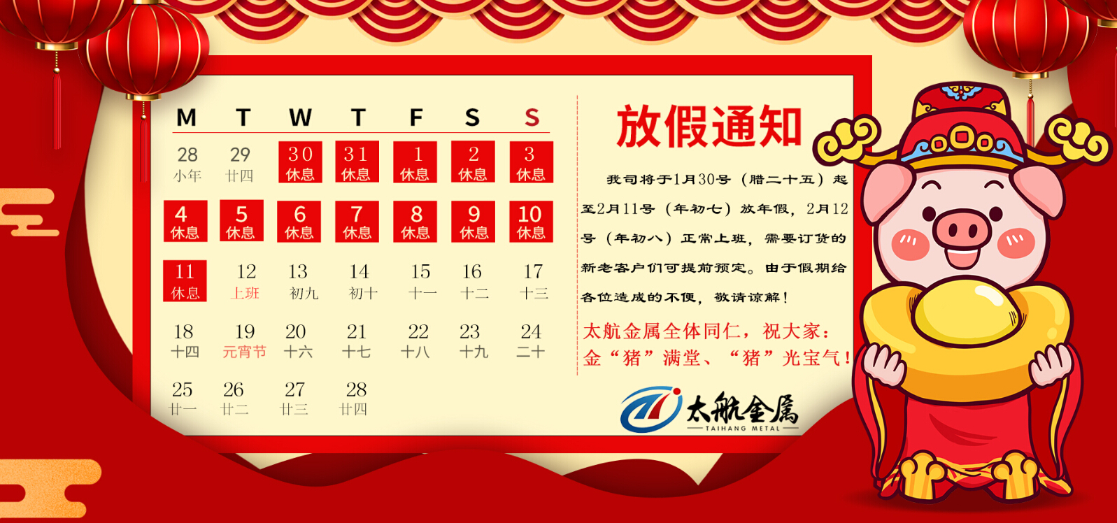 2019年太航金屬~春節(jié)放假通知